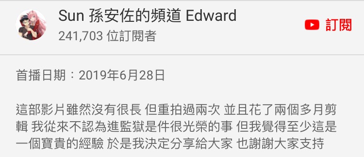 雖然孫安佐一路走來備受爭議,不過他不畏流言蜚語,堅持做自己,這種監獄題材也令不少網友感到新奇,希望他可以繼續分享這類型的影片!