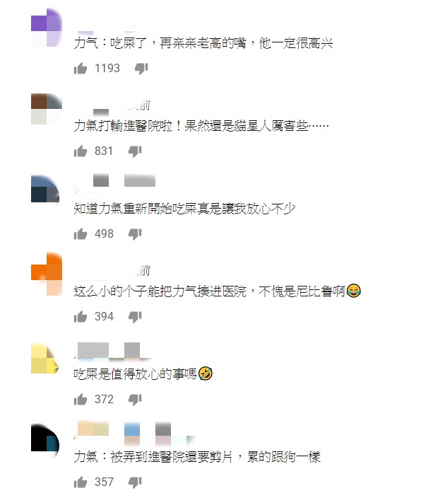 另外老高也提到,尼比魯和力氣相處得不好,造成力氣進醫院,不過現在力氣重新開始吃屎了,老高也放心了,網友看到此貼文紛紛留言,「力氣打輸進醫院啦!果然還是貓星人厲害些⋯⋯」、「這麼小的個子能把力氣揍進醫院,不愧是尼比魯啊」、「吃屎是值得放心的事嗎」、「力氣:吃屎了,再親親老高的嘴,他一定很高興」。