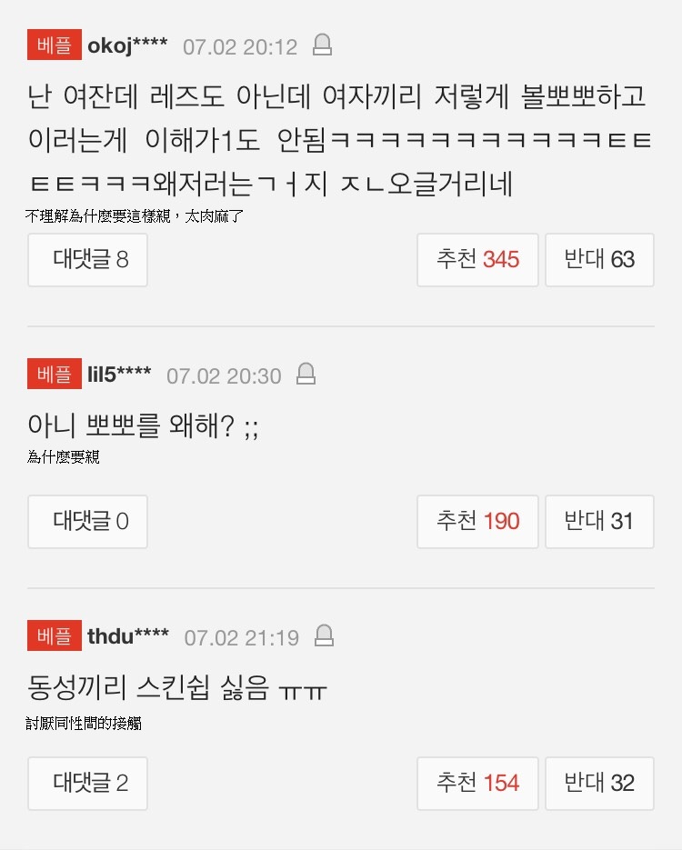 而團體成員也在安可舞台上,興奮地追著對方互親臉頰,台上台下氣氛當相當歡樂,不過節目播出後卻引起網友針對「親吻畫面」大感不滿,甚至紛紛表示「不理解為什麼要這樣親,太肉麻了」、「討厭同性間的接觸」、「好糟糕」。