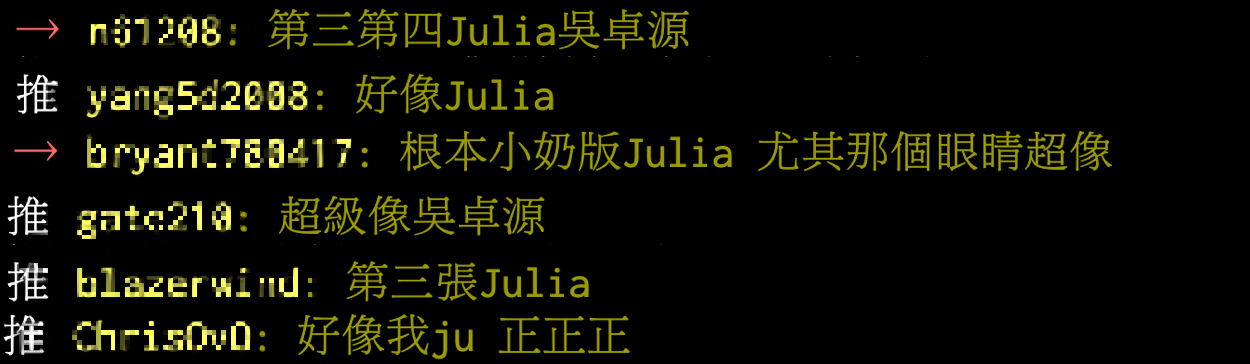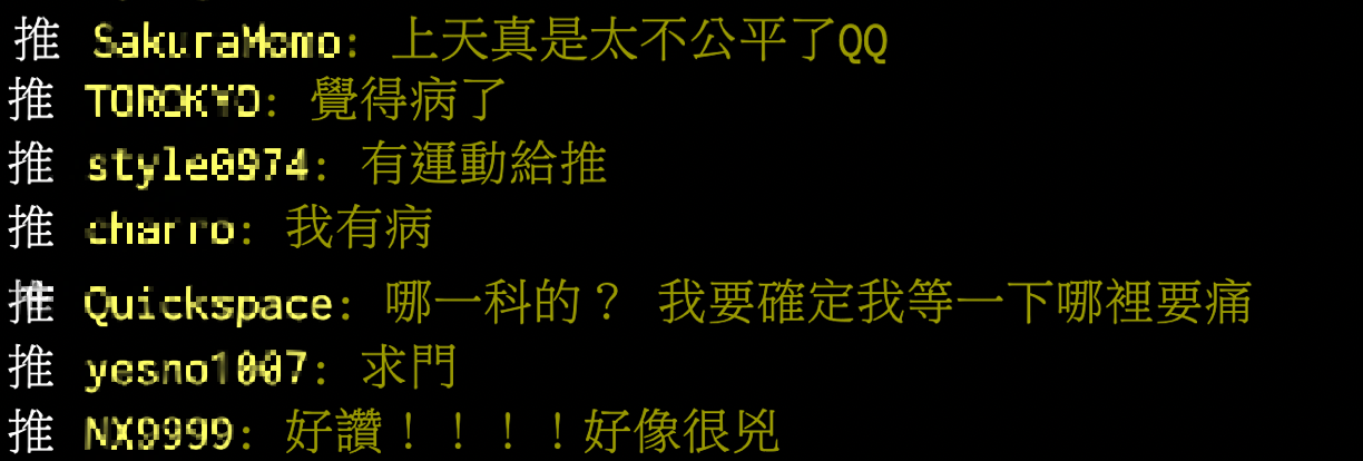 而PTT網友們看見吳明穎醫生的美顏後也紛紛留言:「哪一科的? 我要確定我等一下哪裡要痛」、「好讚!!!!好像很兇」、「我有病」、「求門」、「我皮在癢了」、「突然皮膚好痛」、「上天真是太不公平了」、「專業又性感」,其中也有許多人認為她的長相神似鄉民老婆「吳卓源」,紛紛留言狂推,更有許多人求傳送門,希望能夠取得吳明穎醫生的IG。