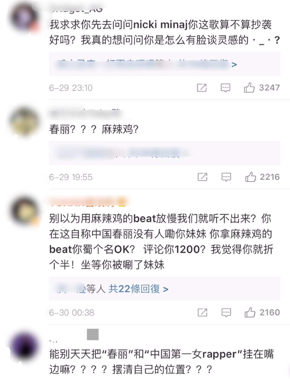 所謂人紅是非多,Free C隨著節目越來越熱播,在網上頻頻被爆出黑歷史,據傳Free C曾經多次破壞別人的家庭,是圈內有名的「小三」,並且還是西安某夜總會的紅牌,小名叫西西,陪睡...等。除了被爆料出這些謠言外,音樂也被挖出Free C的《春麗》抄襲了Nicki Minaj的《Hard White》的節奏,而且速度放慢至0.75倍會發現幾乎一模一樣,連歌詞中「OK! I'm the street fighter,CALL ME CHUN-LI!」都相同,網友紛紛要Free C出來解釋一下創作靈感。