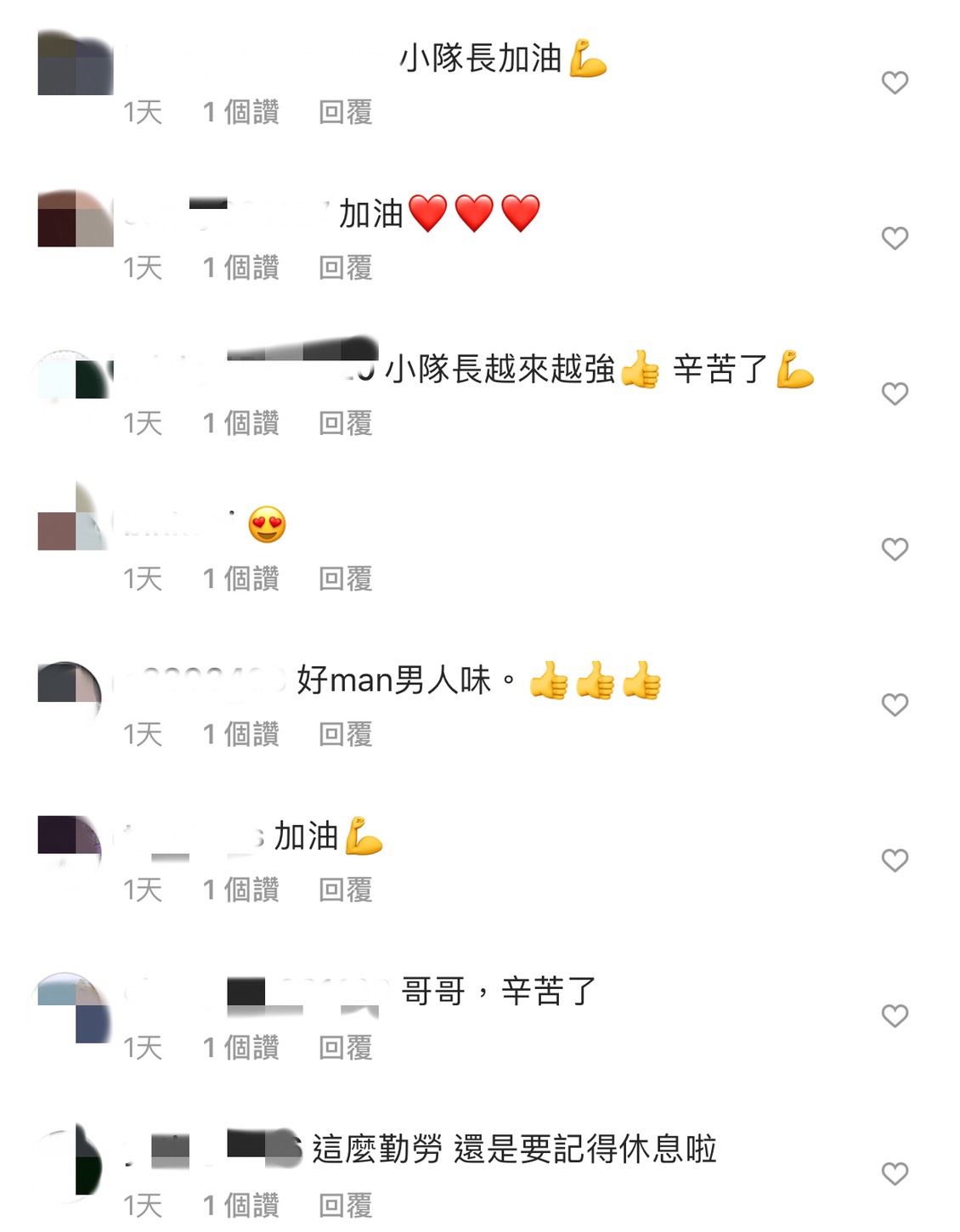 也有許多網友看到這張汗水自拍照後忍不住表白,「太性感了」、「有點太帥」、「這汗水很可以」、「飆汗的小隊長帥」、「鎖骨太性感」、「太犯規了啦,我的媽呀」,當小隊長不容易,小鬼也不斷的提升自己,相信能成為一個更厲害的小隊長。