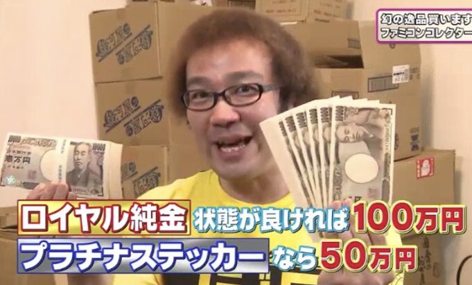 除了自己的家,目前フジタ額外又租了4間房子,卻還是裝不下這些卡帶,滿屋子都是裝滿遊戲的紙箱,甚至已經堆到廚房去,完全沒有走動空間,不過フジタ也樂此不疲,不僅將收集來的遊戲全玩過一輪,甚至願意出價100萬、50萬收購「皇家純金」及「白金」卡帶貼紙。