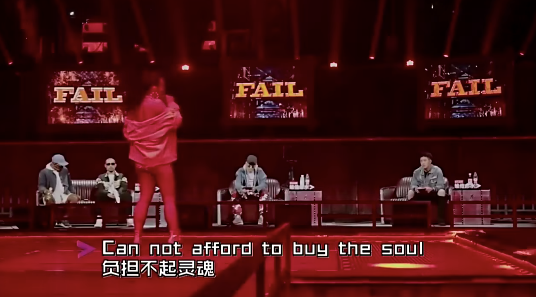 蜜妞當時在《中國有嘻哈》中和一位女Rapper「黃薏帆」結下樑子,當黃薏帆在台上表演的時候,蜜妞在座位區各種搶鏡,並且舉起雙手拇指朝下的鄙視她,看到黃薏帆邊唱邊跳,大秀臀部舞蹈時,她激動時更是站起身來指著她罵,最後黃薏帆獲得1PASS後蜜妞更表現出相當不屑的表情,直嗆:「我覺得那個女孩是假的,我們所有人都覺得她在搞笑」。然而輪到蜜妞上場時,她演唱不到20秒的時間就被潘瑋柏按了一個FAIL,最終三組導師都按下FAIL,蜜妞慘被淘汰,這段影片更被網友笑稱是「大型打臉現場」。