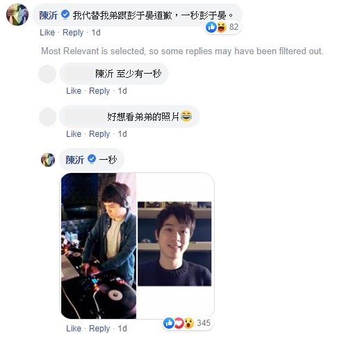 而文章發布後,立刻引起粉絲高度關注,而陳沂也在留言處放上弟弟的照片,幽默打上:「我代替我弟跟彭于晏道歉,一秒彭于晏。」只見照片中的弟弟雖然比較娃娃臉,不過雙眼皮加上高挺的鼻梁,確實有幾分神似男神彭于晏!網友也紛紛留言:「弟弟很帥欸」、「妳家顏值超高」、「弟弟超帥的 粉絲要暴動了」。