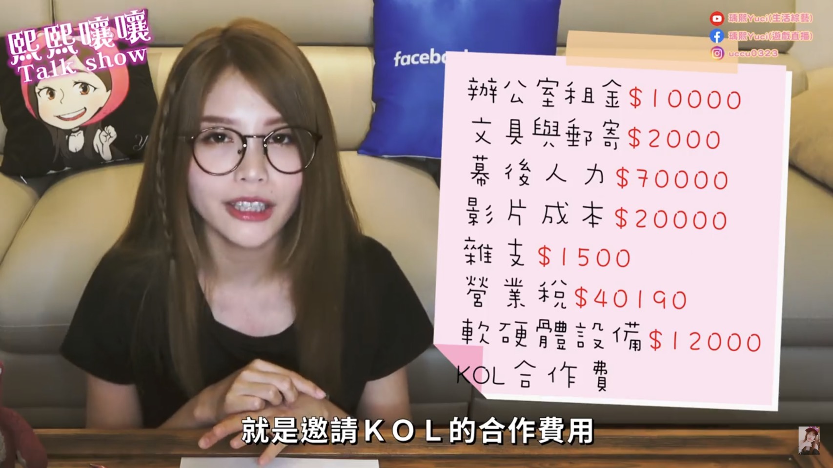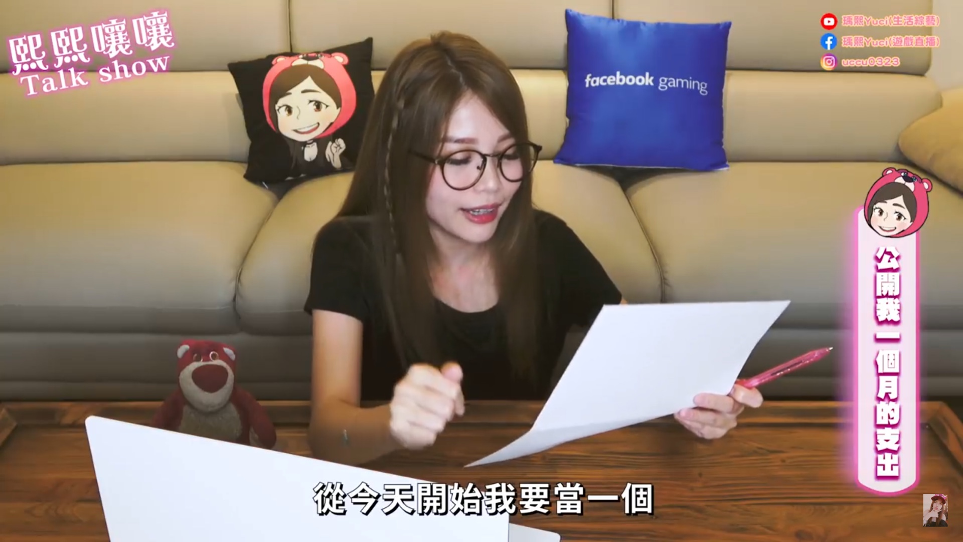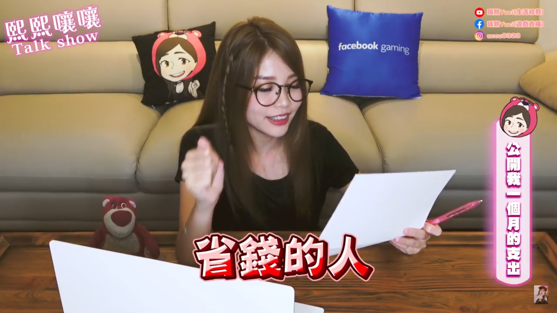 22歲網紅「瑀熙」(Yuci)過去是知名實況直播主,近年轉型經營Youtube,甜美的外型、大剌剌的個性讓她擁有不少忠實粉絲,Youtube頻道更有42萬人訂閱。1個月前,瑀熙曾詢問反骨成員「女生一個月花費多少算合理」,而今天,瑀熙要公開自己的月支出,算出來的總金額十分驚人。