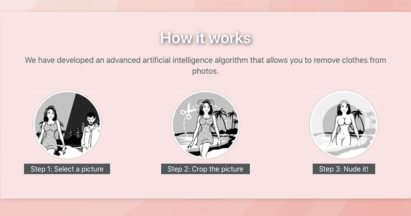 這款軟件名叫「DeepNude」,雖說是透視功能,但其實開發者是基於「圖對圖轉換算法」創建,並使用1萬張女性裸體照訓練AI,讓它可以將圖片轉換成另一張非常相似的照片,進而達到欺騙視覺的效果,而用戶只要輸入一張女性照片,就能在一分鐘內將其轉變成裸照,而且原圖裸露部分越多處裡效果越好。