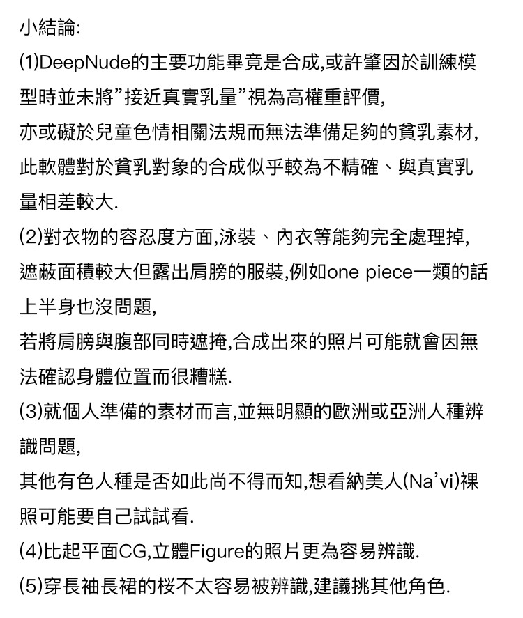 雖然產品下架了,但不少人會在網上敲碗破解版,而且以男性居多。甚至開始有網友分享使用心得,他好奇軟件對人種、乳量和衣服的敏銳度到哪,所以找了許多亞洲和歐美AV女優圖做測試,結果發現雖然可以合成,但離真實尺寸卻有些差距,如果遮蔽物不要太多,大致上效果還是不錯的,所以才能達到以假亂真的地步。