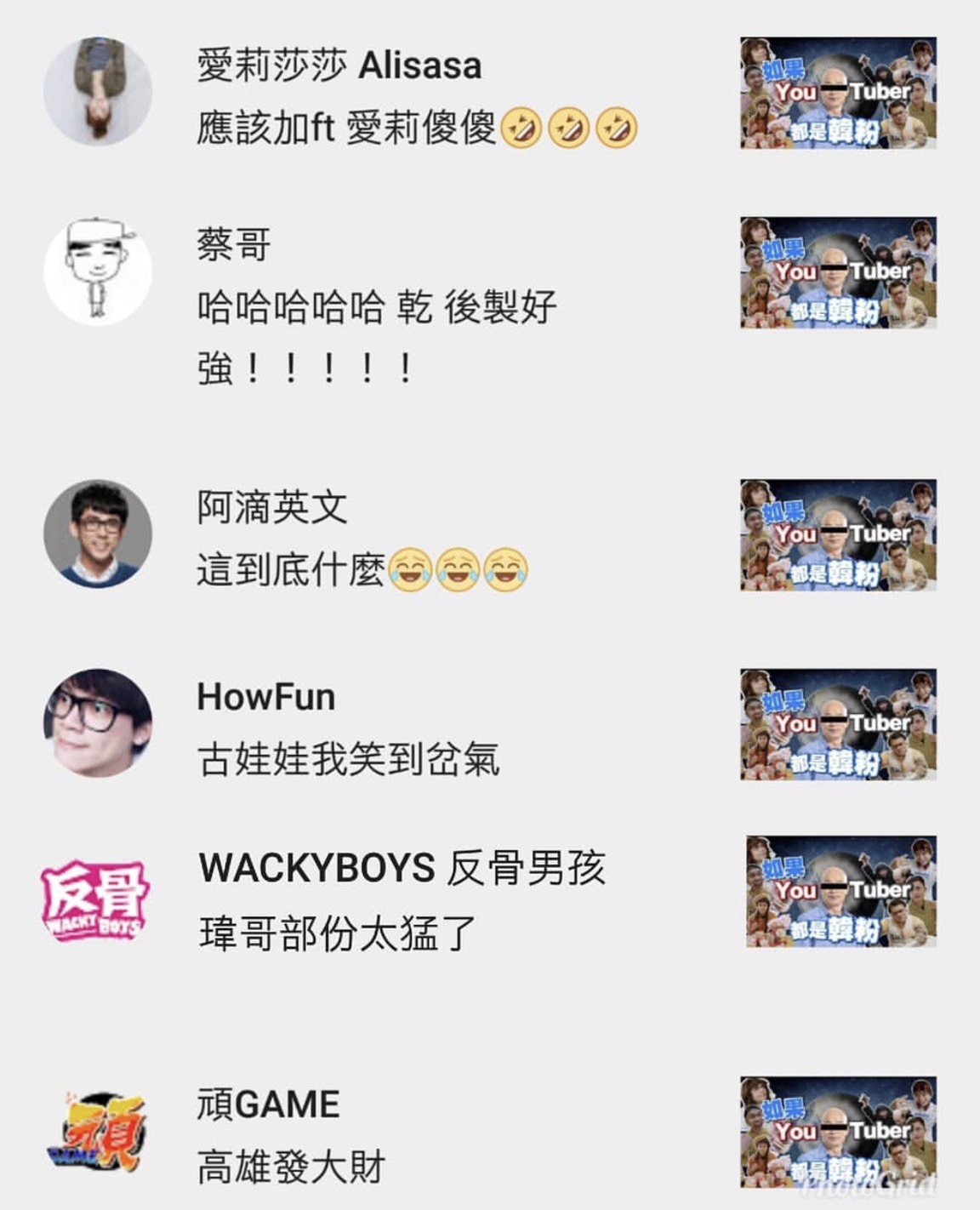 蔡阿嘎模仿多位網紅,這些當事人也在影片底下留言,如滴妹:「我哪有亂拼英文」、館長:「X你實在很靠X,那衣服塞多少棉花啦~」,但不久後,這些網紅的留言都被刪除了,有網友猜測,可能是蔡阿嘎工作團隊擔心他們受到牽連因此刪除留言。而蔡阿嘎在影片的最後也表示自己沒有任何立場,純粹好玩娛樂大家。