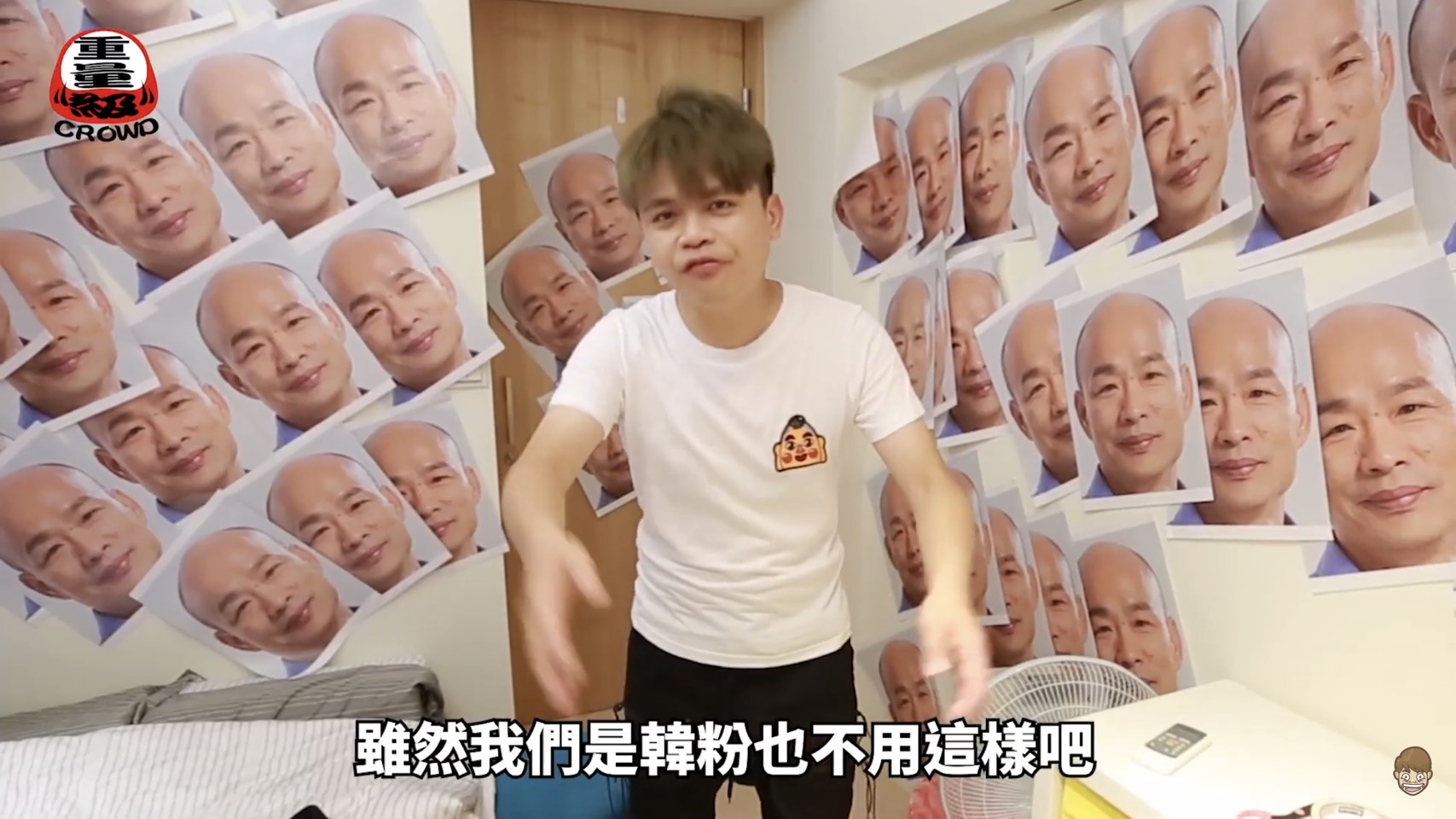 其中,模仿「館長」的橋段引起廣大迴響,除了語氣相像,連裝扮都刻意戴上耳機,更直接譙出XXX,網友忍不住表示「館長那一段,一定是阿嘎的真心話」。模仿「眾量級」的部分也令人印象深刻,無論是「家寧」的黃金五秒鐘,或是在房裡貼滿「韓市長」的照片,完全學到精髓啊。