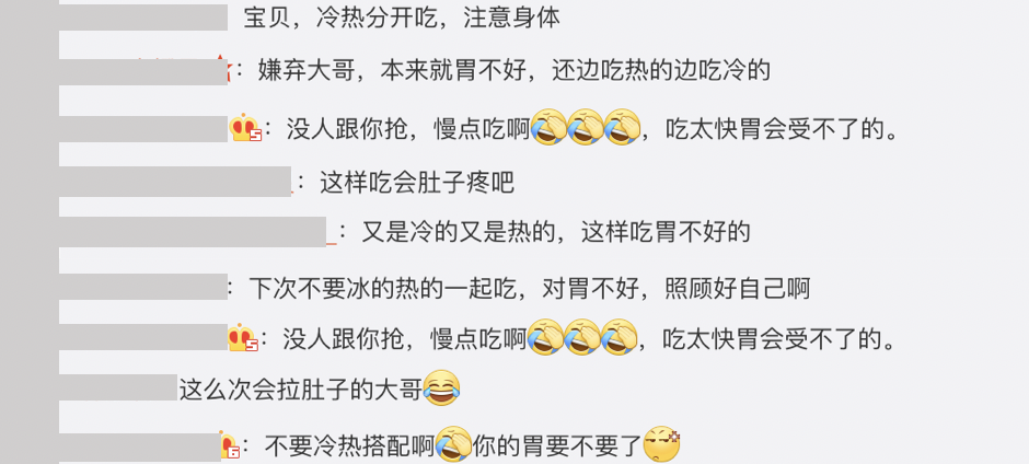 然而粉絲們看見華晨宇一邊吃熱食一邊吃冰淇淋的吃法,紛紛擔心的寫下:「沒人跟你搶,慢點吃啊,吃太快胃會受不了的。」、「不要冷熱搭配啊,你的胃要不要了」、「寶貝,冷熱分開吃,注意身體」、「這麼吃會拉肚子的大哥」、「下次不要冰的熱的一起吃,對胃不好,照顧好自己啊」、「嫌棄大哥,本來就胃不好,還邊吃熱的邊吃冷的」,粉絲們都很擔心華晨宇這樣的吃法會拉肚子。
