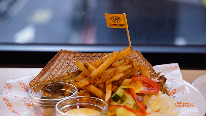走進Campus店裡你會發現這裡洋溢一種年輕活潑的氛圍,跟我們這一群被大雨霸凌的製作團隊形成一種強烈的對比,我們就像是自帶單色特效一樣,走到哪裡,那裡就變成黑白色的氛圍,其實有時候想想,我們應該要認命一點,明知道總是會碰到天氣不好,就不要去拍那種風光明媚的地方,這是我們經過自怨自艾的檢討後所討論出來的結論。