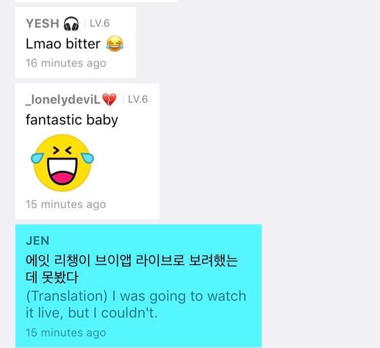然而ROSE與LISA都沒注意到他的留言,隨後,JENNIE又在下方回覆「我本來也想在星期天的時候在V LIVE上發文的,但因為軟體更新太多,我竟然找不到發文的地方」,直白的言論讓粉絲表示原來也有JENNIE不會的事!更揚言表示「讓我來教妳吧」!