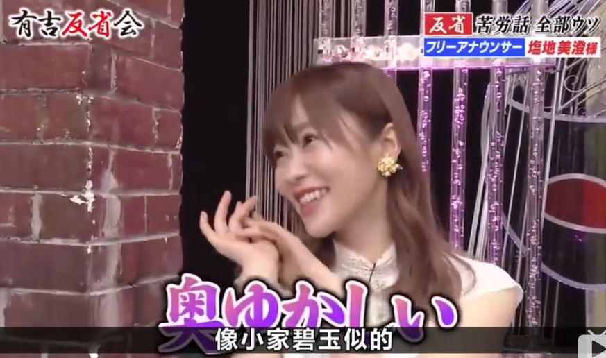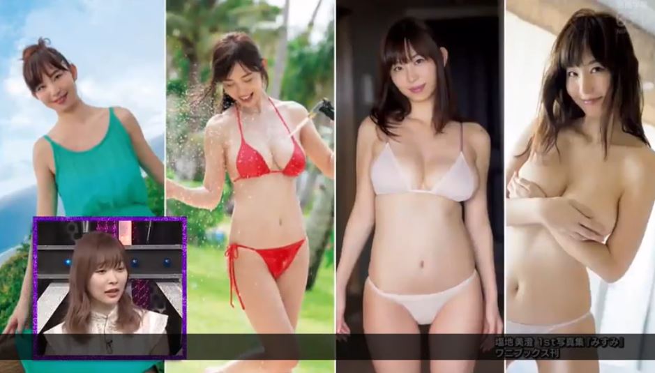 事實上鹽地美澄自2006年成為地方新聞台「秋日昭日放送」的主播,就因為甜美外貌贏得「東北第一女主播」的稱號,隨後也轉戰演藝圈成為寫真女星。而節目中也透露寫真集的尺度甚至連年變大,鹽地美澄坦言「當我意識到的時候,已經變手胸罩了」讓現場資深女星嚇壞表示「什麼意識到啊,應該要防守啊」。