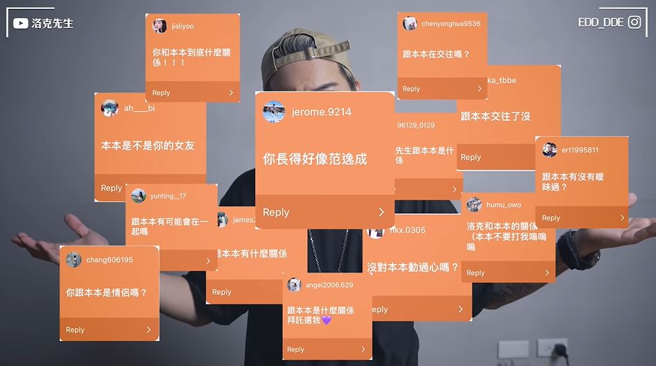 而近日洛克上傳十萬訂閱QA影片,其中網友最關心的,便是他和本本的關係,而對此他則表示:「我跟本本的感情確實超過朋友,就像情侶一樣的相處,我們每天見面,我們每天一起吃飯、拍片,未來的事就順其自然吧!」雖然沒有明確說明,不過也讓觀眾有更多想像空間。