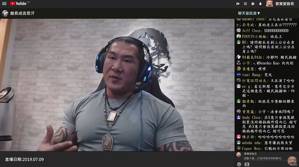 館長,是台灣知名直播主,因為敢怒敢言的性格受到許多粉絲支持,而他之前在開台時,直指台灣藝人愛「人民幣」,不敢站出來為台灣人民說話、為反送中說話,更直嗆天王吳宗憲,引發吳宗憲於本月3日回擊「拿公益來比呀,921你捐多少?」而昨吳宗憲出席記者會,又公開diss館長「等我反撲你會受不了」,讓館長在開台時反串狠酸他!