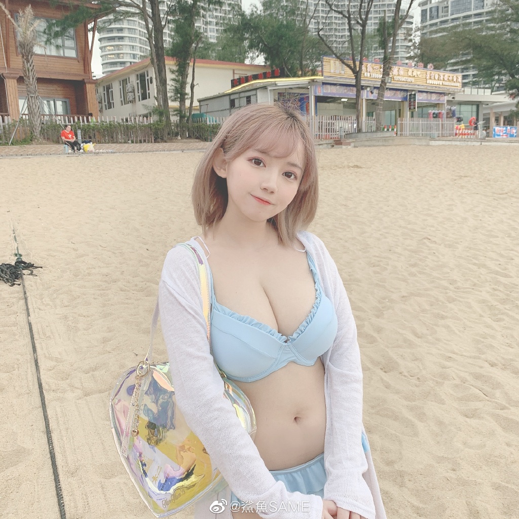 大陸21歲的超萌Coser「鯊魚SAME」在微博上擁有32萬粉絲追蹤,同時她也固定在鬥魚直播上進行直播,人氣非常的旺。而她擁有一雙水靈大眼以及非常清純的氣質,笑容看起來非常無害,然而在她如天使般的臉孔下其實身材非常反差,鯊魚的身材非常的姣好,近日她在微博上發出一組在海邊的照片,而她身穿一件淺藍色的比基尼,渾圓美胸令許多網友大飽眼福。