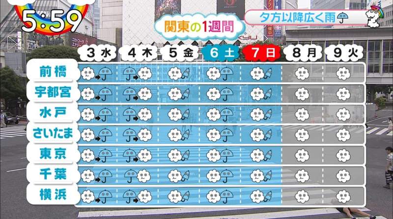 近日受梅雨鋒面影響,日本九州雨下不停豪雨成災,因此節目一播出,就先請觀眾注意大雨,在播報各地一周天氣時,眼尖的觀眾發現在右下角似乎有一位行為舉止怪異的女子。這名女子直接躺在馬路的斑馬線上,躺下後雙手雙腳大開呈現大字型,並且不斷將雙腳抬起放下,似乎在練習後滾翻,單穿黑色oversizeT恤的她,在把腳抬起放下的過程中,內褲完全被看光光,怪異的行徑不僅被拍下來,還在全國觀眾前播出。