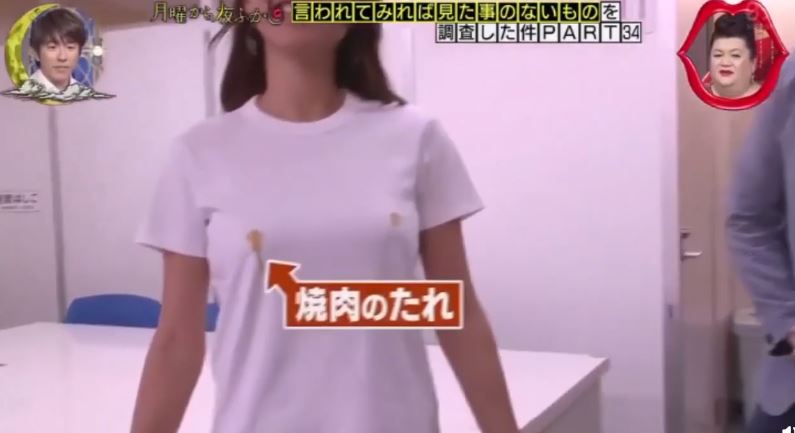 由日本電視台推出的綜藝節目《月曜夜未央》(月曜から夜ふかし),會調查日本各地的庶民生活和特殊現象,也意外能製造不少有趣甚至驚人的節目效果。而近日播出的節目中,介紹了一名「味覺顧問」專業在辨識食物味道,節目組更安排模特兒青山美琦(青山めぐ)把食物醬汁沾到衣服上實測,不過也讓該名男性味覺顧問尷尬直問「真的沒關係嗎」。