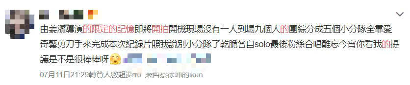 好不容易等到團綜的官宣,粉絲的留言卻都是關注個人,團粉的留言佔極少數,網上甚至流傳《限定的記憶》開機現場沒有人到場,成員也不會合體,靠剪輯來完成紀錄片。出道以來,NPC成員各自的發展不錯,但團體活動很少,全員到齊更是少之又少,粉絲都相當期待能在《限定的記憶》看到九人合體。