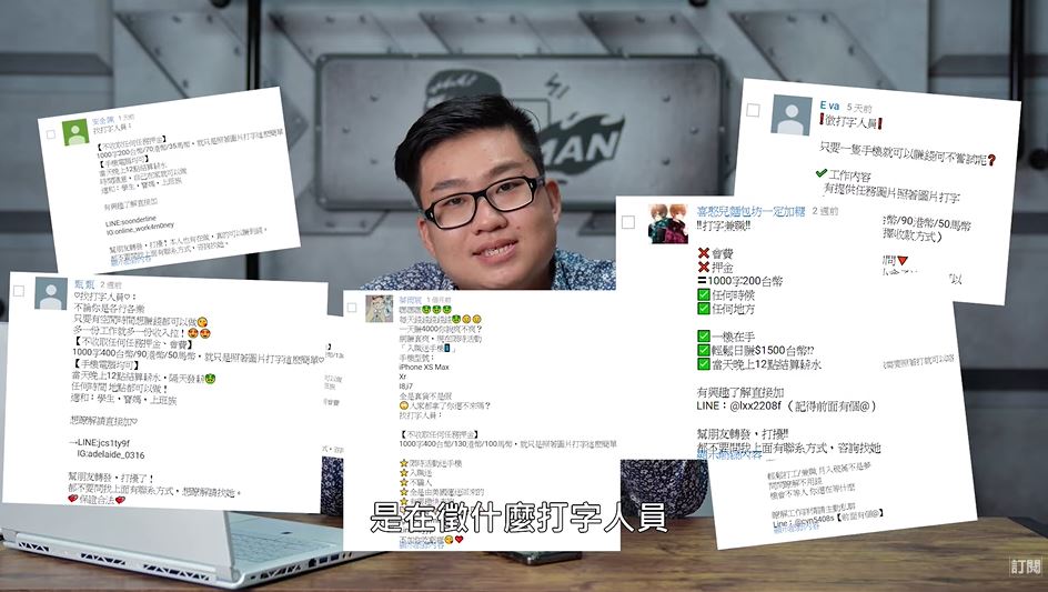 超高收入?「Joeman」實測「打字賺外快」 遭詐騙怒飆:你媽知道你在這邊騙人嗎?