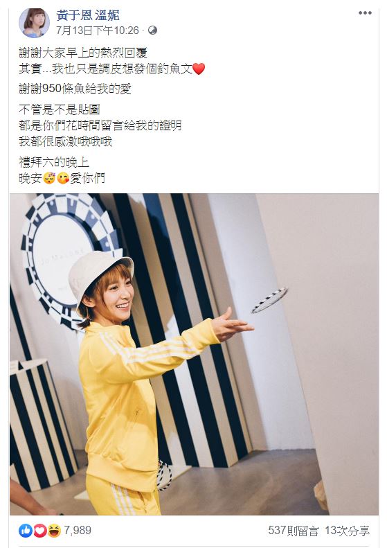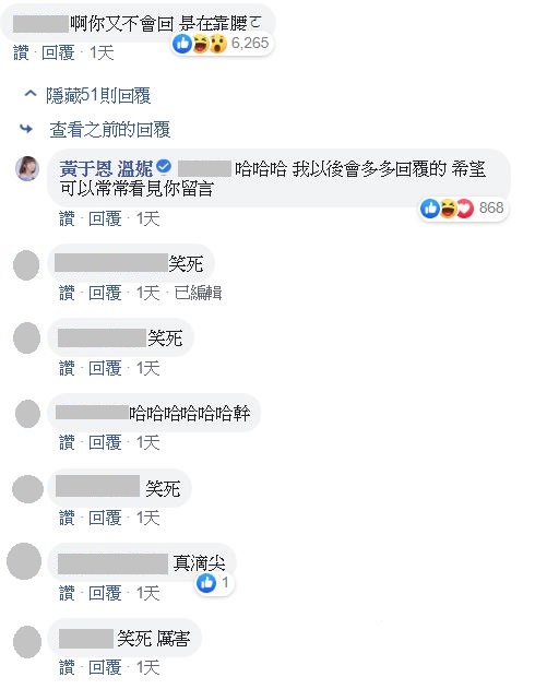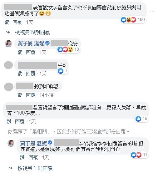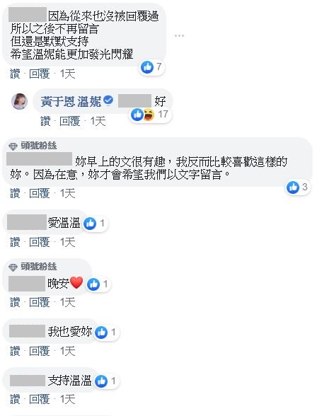 圖片來源/截取自 黃于恩 溫妮 留言區