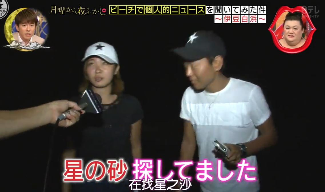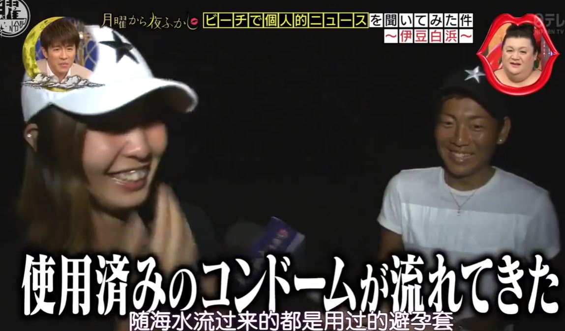 由日本電視台推出的綜藝節目《月曜夜未央》(月曜から夜ふかし),會調查日本各地的庶民生活和特殊現象,也意外能製造不少有趣甚至驚人的節目效果。最新播出的節目中探訪位於日本伊豆的白濱海灘,深夜12點後遇到一對情侶聲稱在找幸運星之砂,卻尷尬表示「全是避孕套」,事實上該海灘被節目稱是「全日本最輕浮的海灘」。