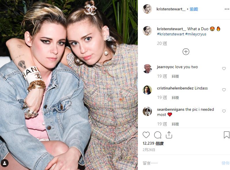 2016 年,克莉絲汀史都華與 28 歲比利時名模、維多利亞的秘密天使史黛拉麥斯威爾(Stella Maxwell)交往,然而此前才剛分手「雷神弟老婆」甚至和演藝圈好友麥莉希拉(Miley Cyrus),無縫接軌疑似導致克莉絲汀和麥莉鬧翻。不過今年2月在香奈兒的活動中,兩人卻時隔兩年同框搭肩合照,成功破冰讓外界相當驚訝。目前克莉絲汀史都華剛結束電影《霹靂嬌娃》(Charlie's Angels)的拍攝,同劇演員尚有娜歐蜜史考特(Naomi Scott)、艾拉巴林斯卡(Ella Balinska),以及加盟演出霹靂嬌娃上司的伊莉莎白班克斯( Elizabeth Banks)。