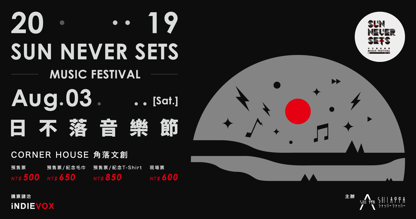 今年4月首次舉辦的「日不落音樂節」打破常規進行線上演唱會轉播,引起廣大的迴響,線上收看人數突破5萬人。不到半年的時間內即將舉辦第二次的「日不落音樂節」,線上轉播的對象除了台灣以外,更將加入日本以及其他國家,超過10組的演出者更是來自台灣日本香港等地方,是一場名副其實的國際音樂活動。