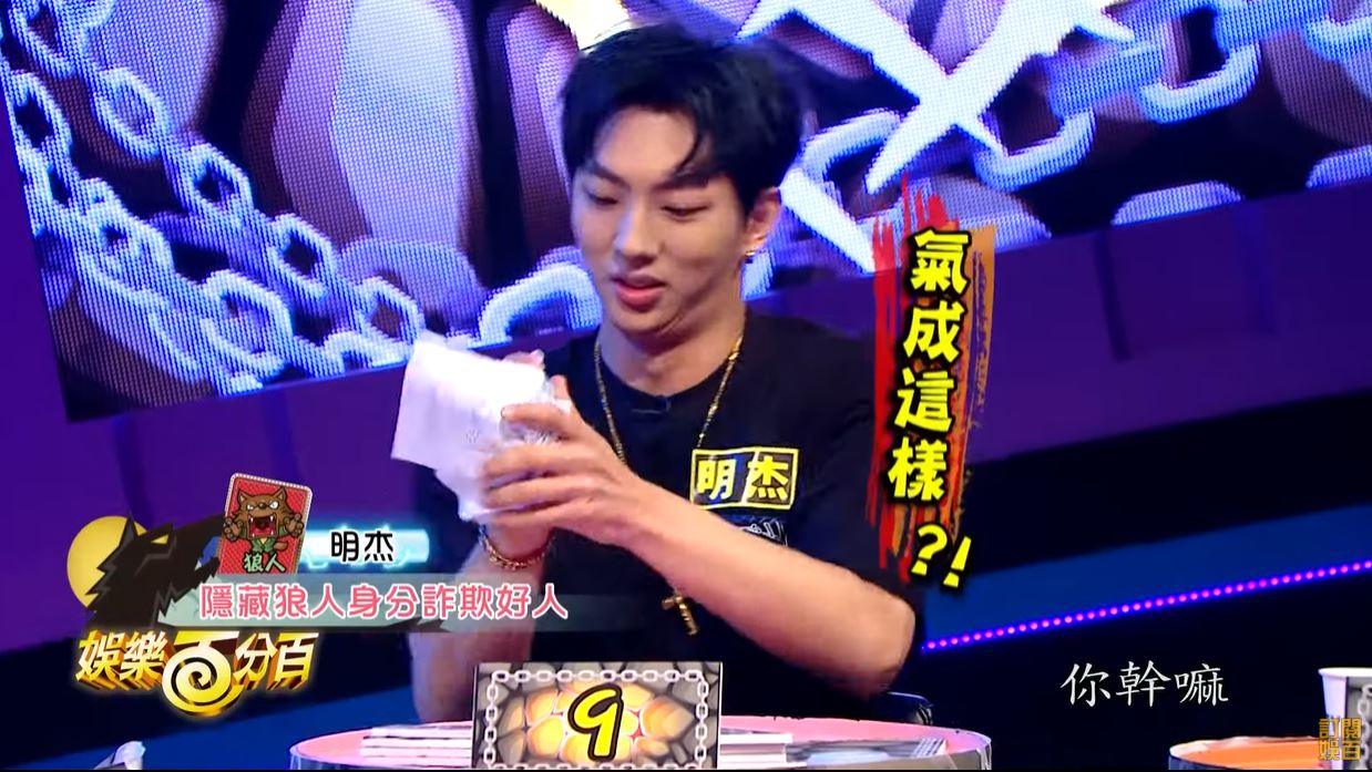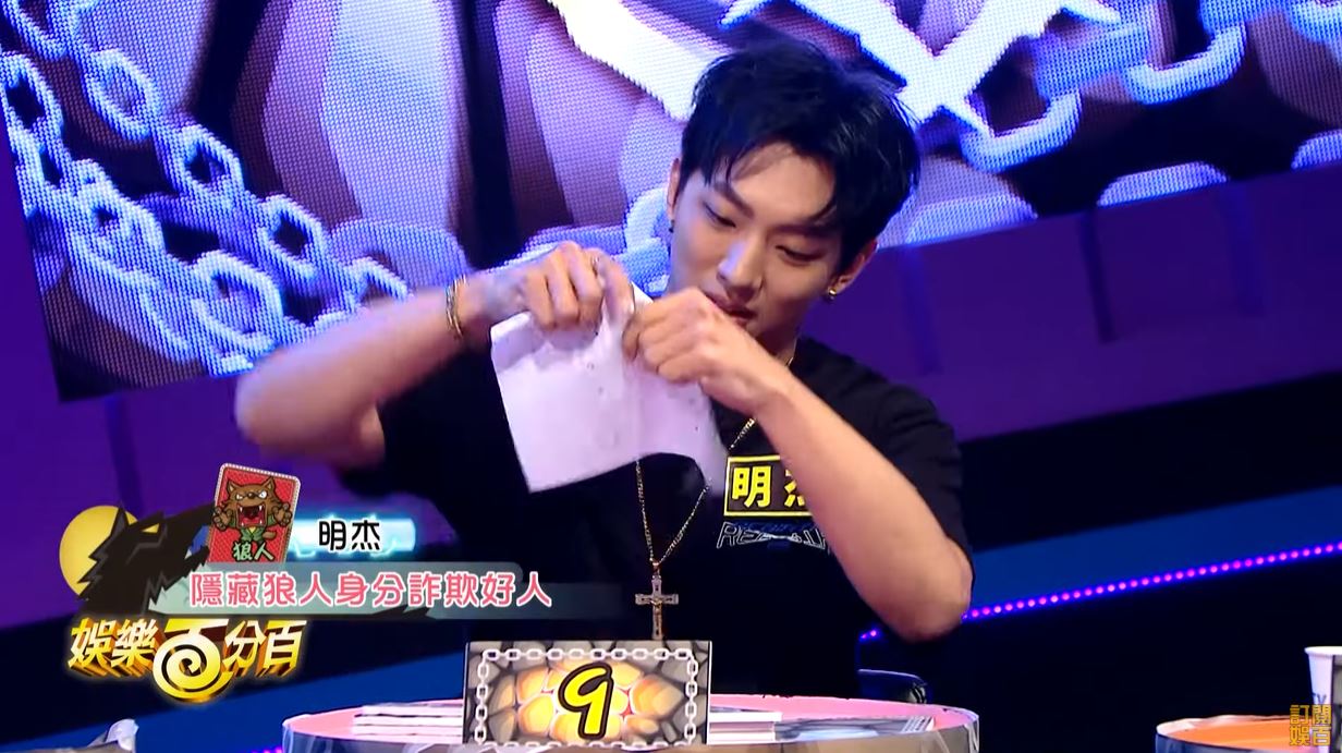 《娛樂百分百》推出的「凹嗚狼人殺」單元深受許多網友喜愛,日前一集節目中,風田拿到預言家角色,驗出愷樂是一批狼,被查出來的愷樂當場傻眼,也直接招了自己就是狼,讓身為狼同伴的明杰瞬間暴氣,直說自己已經計畫好該怎麼對付好人,卻被愷樂擺了一道,不僅當場走心撕掉筆記,還承認自己就是狼的身分,讓好人輕而易舉地獲勝,愷樂和明杰此舉也引起兩派網友激烈論戰,有人認為他沒有運動家精神;也有網友認為是愷樂不該招出自己的身分。