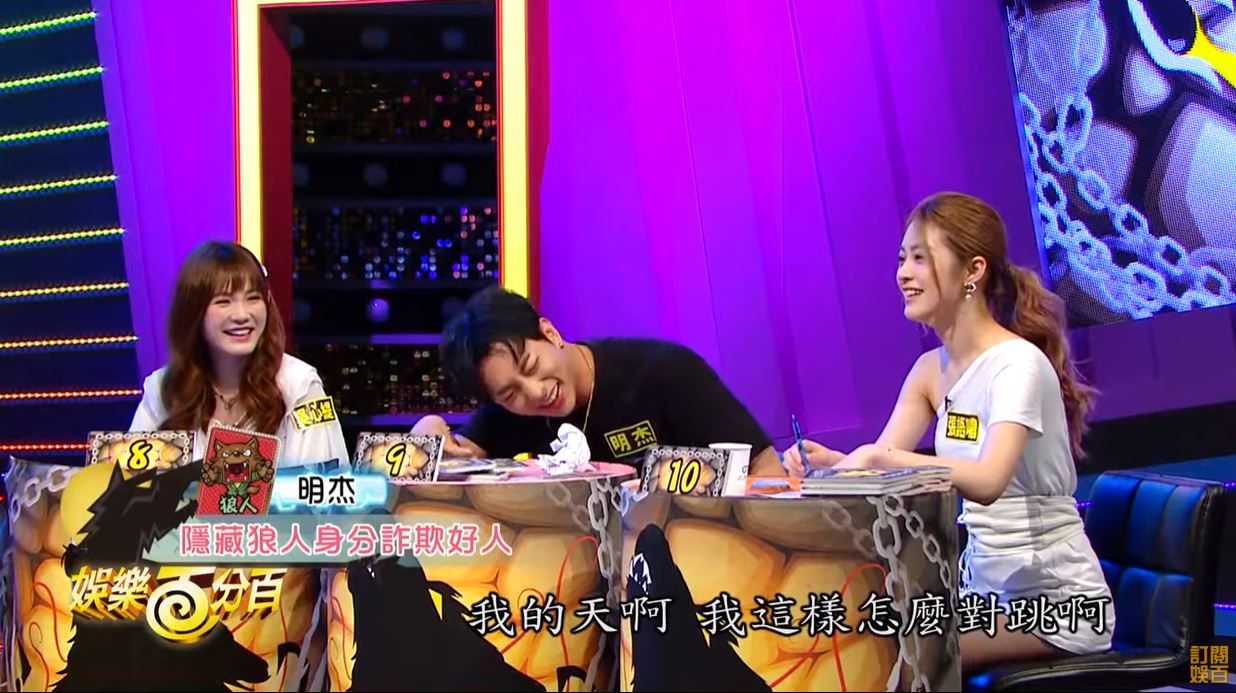 輪到她的狼同伴明杰發言時,明杰暴氣撕掉寫筆記的紙張,直說自己已經計畫好要怎麼對付預言家,沒想到愷樂卻直接招了,等同坐實對方預言家的身分,走心大喊:「我的天啊!我這樣怎麼對跳啊!我跳不了了啦!」愷樂還在一旁無辜的說:「為什麼不能跳!可以啊!」全場所有人一臉尷尬。