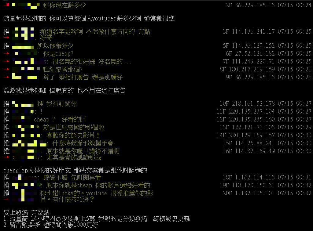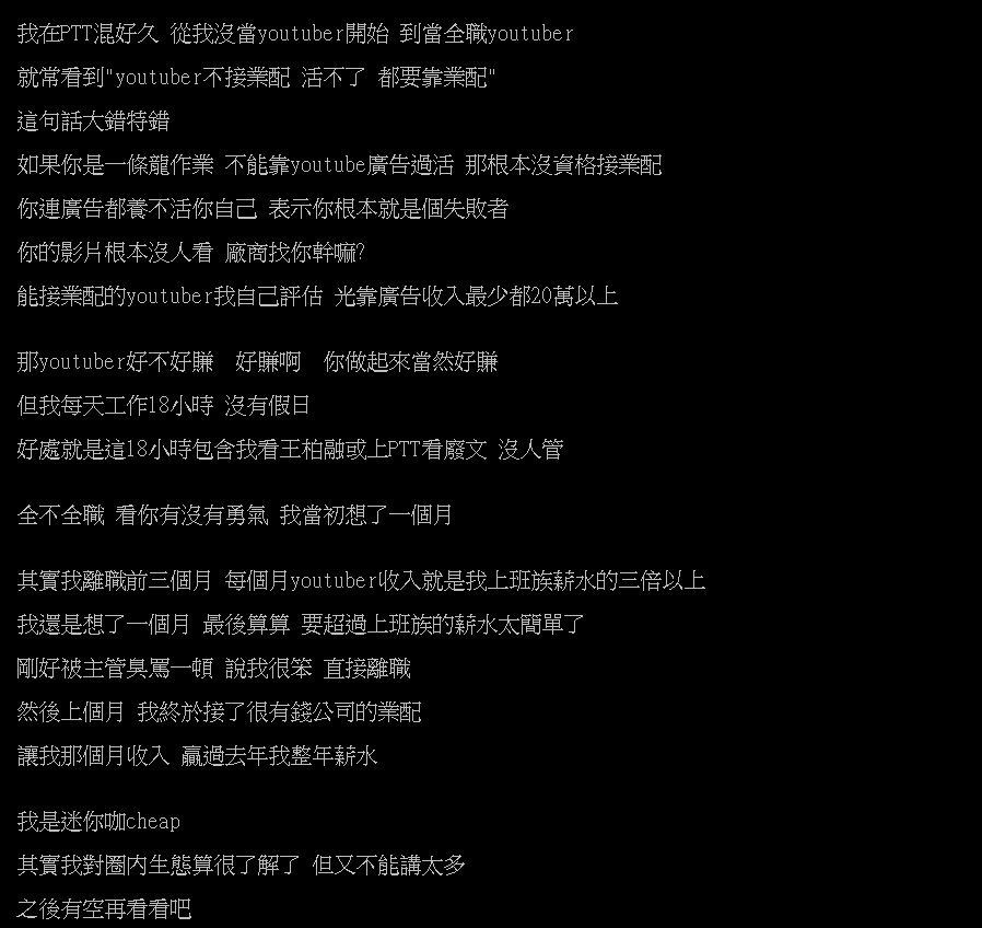 cheap這次也在留言處分享了許多自己當Youtuber以來的經驗分享,也讓有網紅夢的網友可以更了解Youtube生態。只能說不一樣的業種都有自己的規則,想嘗試的網友還是要多做功課!