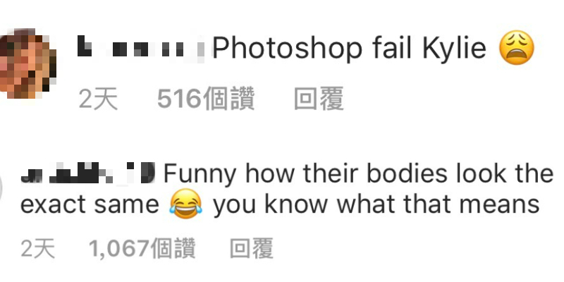 另一張照片凱莉·詹娜和朋友在豪宅前自信地擺出姿勢,眼尖的網友還是發現了後方地板歪曲,「修圖失敗的凱莉」、「有趣的是他們的身體看起來完全一樣,你知道這意味著什麼?」。許多網紅、明星在上傳照片前,為了呈現更完美的自己,都會使用修圖軟體後製,但要小心不要修到背景的線條,否則被網友抓包會非常尷尬。