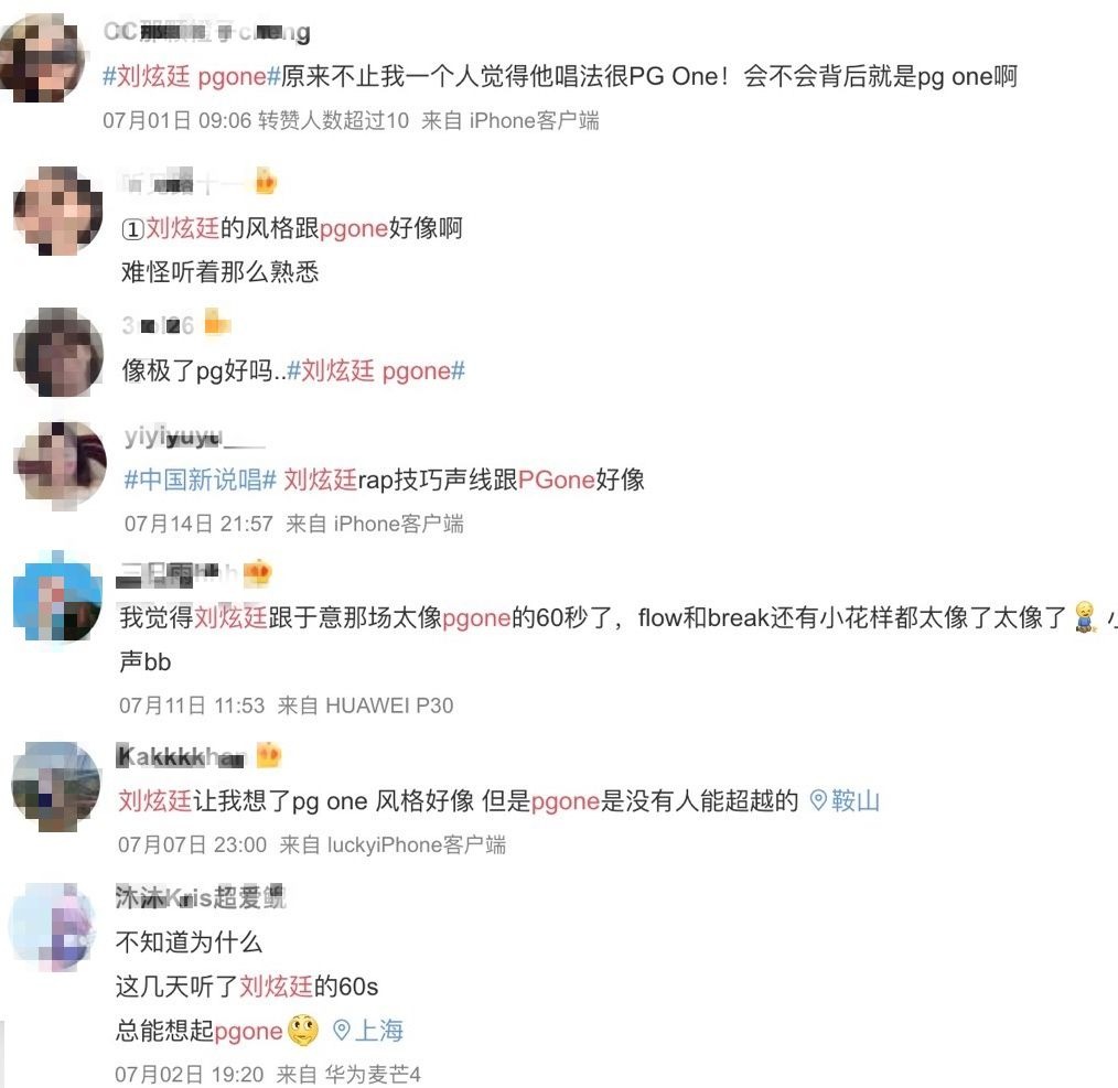 劉炫廷歌曲的Flow或是停頓的拍子都被網友指出和PGONE很相似,在《有嘻哈》60秒環節時PGONE也玩了很多停頓的拍子,雖然多數網友覺得劉炫廷的實力和PGONE還是有一段差距,但已經很厲害了更被稱為是這一屆的最大黑馬。然而在最新的合作賽環節中,劉炫廷和人氣選手嘿人李逵一起合作,兩人將中西方文化合作一起,推出歌曲《Black&Yellow》,精湛的演出獲得4組導師的PASS,兩人雙雙晉級。