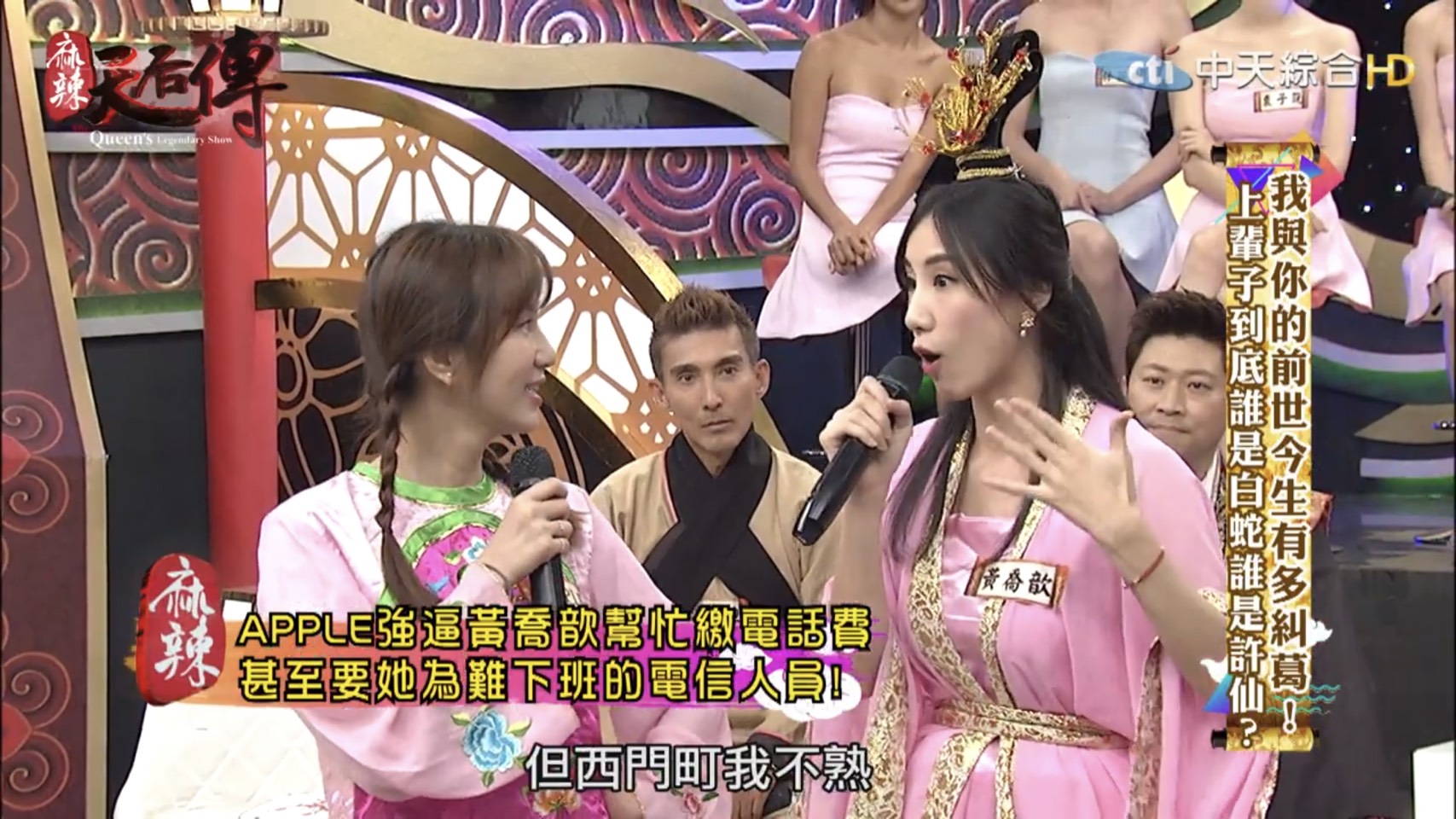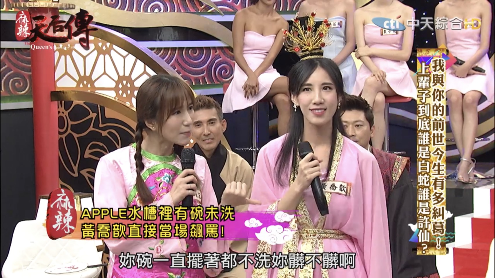 綜藝節目《麻辣天后傳》此集的主題是「前世今生」,瑤瑤和姊姊「Apple」一起上節目,倆人互相抱怨對方,Apple會強逼瑤瑤幫她做事,即使在跟男友約會也要馬上去替她繳電話費;瑤瑤則是很愛管Apple,看到水槽裡有還沒洗的碗會直接飆罵。但是肯定是前世發生了什麼事,這輩子才能成為姊妹。