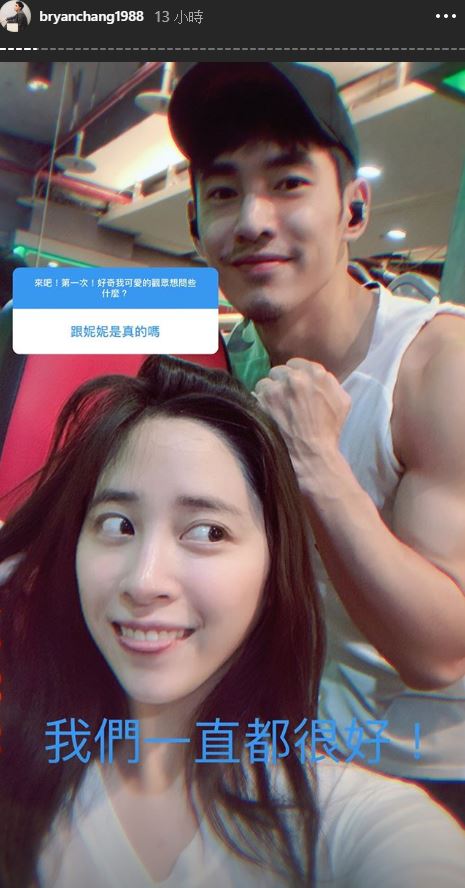 張書豪日前和歐陽妮妮傳出緋聞,事隔兩個多月後,兩人不約而同在IG限時動態開放網友問答,且都被問到是否真的在交往的問題。張書豪不避諱公開兩人在健身房的私照,直說:「我們一直都很好!」