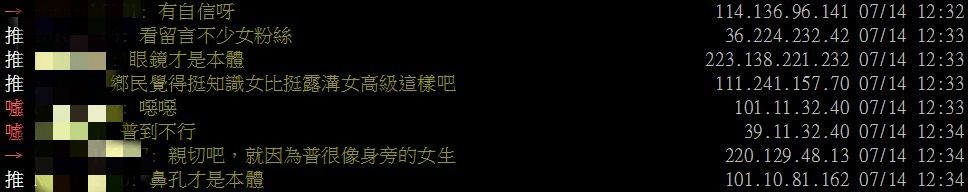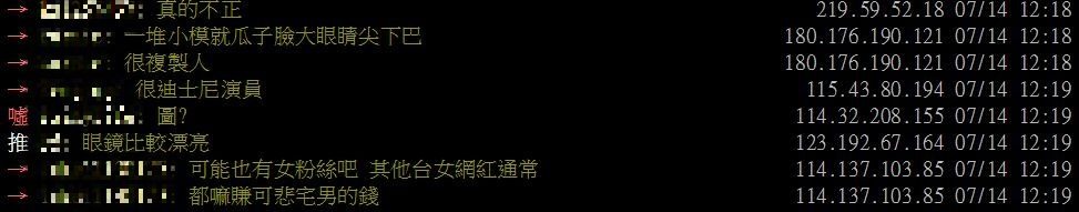 而文章發布後,立刻引起許多網民論戰,有部分網友認同原PO的說法:「很普」、「真的不正」、「他最近拍了一堆盲測的東西 有夠無聊的」、「普妹破百讚,不是常有的事嗎」、「完全問號 不正也沒身材」,不過另有許多網友列舉滴妹優點,直言秒殺其他網紅!