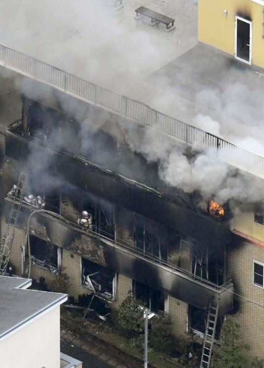 綜合日媒報導指出,18日上午,位於日本京都伏見區的京都動畫公司,遭到一名41歲男子疑似在沾有汽油的物品上點火,嘴裡還不斷念著「去死!」,當時大樓先是碰一聲爆炸,接著造成整棟大樓嚴重失火,接獲通報的消防人員派遣超過30台消防車抵達現場,花了3個多小時火勢都難以撲滅。