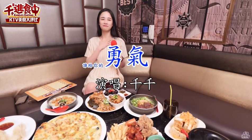 千千過去因為常常大展歌喉卻五音不全,也被粉絲搞笑封為「靈魂歌手」,近日她推出新影片,開頭她就在KTV中,點播了梁靜茹的經典歌曲《勇氣》,原以為她會自己唱完整首,沒想到進入副歌時梁靜茹本尊卻驚喜加入,完美救場。而曲畢梁靜茹也搞笑調侃她:「終於來到這裡吃東西了,不如就不要再唱了,我餓了!」