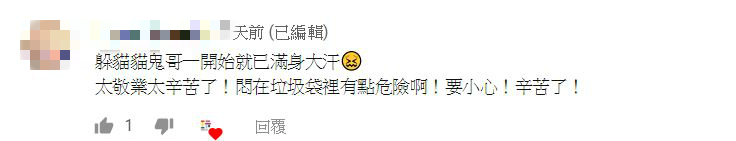 小鬼在這一集中冒汗的模樣令觀眾印象深刻,讓觀眾大讚非常敬業,「鬼哥果然不是叫假的,鬼哥用命在玩」、「這集的小鬼,讓我感動到想哭,也太敬業,那個汗爆成這樣,是真的快不能呼吸了」、「小鬼躲的汗流成那樣心疼辛苦了」、「躲貓貓鬼哥一開始就已滿身大汗,太敬業太辛苦了!悶在垃圾袋裡有點危險啊!要小心!辛苦了!」。從加入《玩很大》後,雖然首戰失利令人印象深刻,但小鬼每次錄影都拚勁十足,努力的模樣大家有目共睹。