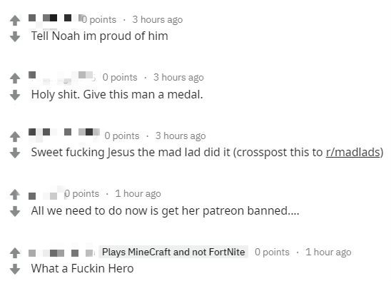 今日稍早有位名叫「FaintedTreecko」的用戶,在Reddit 論壇分享一張IG 限時動態截圖,上面顯示他的友人「Noah」檢舉Belle Delphine其IG中含有裸露、色情內容,違反社區指導方針,讓她高達400萬追蹤的帳號被官方移除,對此有網友回應:「告訴Noah我為他感到驕傲」、「天哪!該給這個人一枚獎牌」、「我們現在需要做的就是讓她的patreon被禁止」,紛紛稱讚Noah是英雄,由此可見Belle Delphine並不受歡迎。