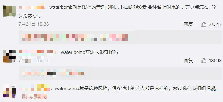 有網友認為泫雅的濕身泳裝照搭配熱舞風塵味很重,「以前我是認為她是性感,現在的畫風我真的覺得很低俗」、「有點廉價的感覺,並沒有覺得性感,感覺她變化好大」、「好像我們鎮上歌舞團的!」;也有許多網友幫泫雅說話,「water bomb穿泳衣很奇怪嗎」、「waterbomb就是潑水的音樂節啊…」、「奇怪了,這是water bomb啊,不穿泳衣穿啥?」。