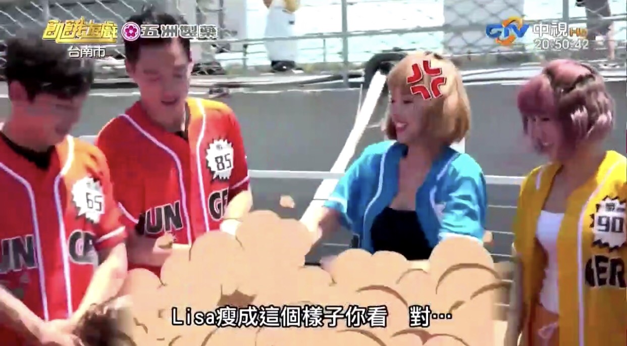 到了下一個關卡,要分成男女一組,而落單的男生要跟萌哲的伴侶「Lisa」一組,餅乾聽到Lisa這個名字,馬上生氣的面對許孟哲說,「你有伴侶?!」,接著在看到Lisa只是一個人偶後,更加憤怒的表示,「這個你也可以」,許孟哲很認真的回答,「我只可以這個(Lisa)」,餅乾還揍了Lisa幾拳,並很真心的表示,「我比較好吧」,讓現場來賓笑翻。