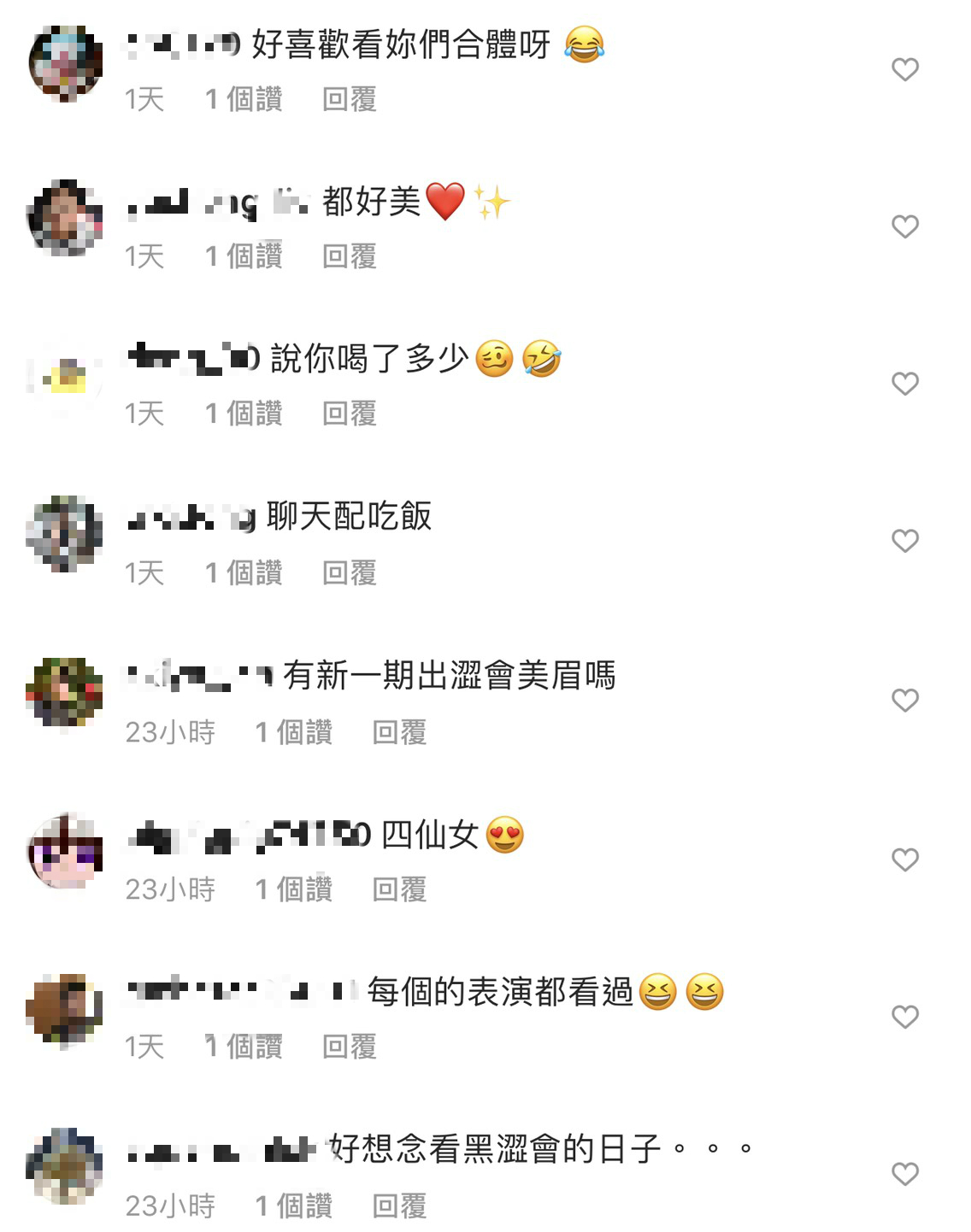 雖然節目《我愛黑澀會》已經過了15年,大家也都各自發展,但彼此間深厚的友情永遠不變,洪詩曬出這張同框照,也勾起許多粉絲的回憶,紛紛表示,「天啊我青春的回憶~~~」、「好喜歡看你們合體呀」、「好想念看黑澀會的日子」、「想當初我每個人的表演都看過」、「天啊難道要回歸了嗎」。