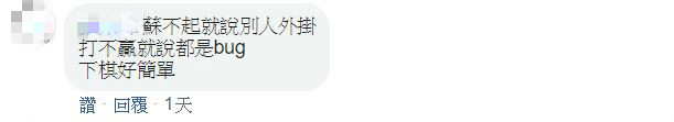 蘇蘇的文引發網友論戰,不少人認為她是輸不起才說別人外掛,並留言表示:「好啦好啦~就你最特別啦~外掛都被你遇到」、「蘇不起就說別人外掛,打不贏就說都是bug」甚至有網友將此文轉貼到PTT瘋狂打臉,該網友指出圖一的第一名只有 6 人口,相較於蘇蘇的 9 人口看不出哪來的外掛保證,而圖二的3-6一隻三星狼也沒什麼問題,至於圖三畫面本不在蘇蘇身上,會空白是正常的,他還表明如果是自己被蘇蘇嗆,也不會想回嘴。