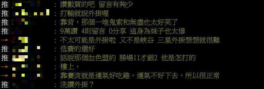 甚至還有遇到直接在遊戲裡開賣外掛、三排洗分。