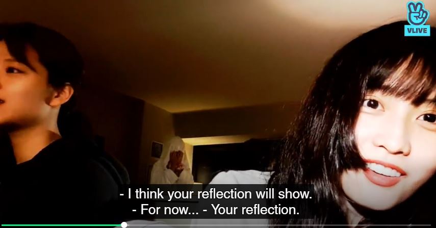 直播中,定延和Momo才剛結束演唱會,還沒梳洗就已經在房間享用消夜,聊到一半時,兩人後方鏡子鏡反射出一個僅單穿浴袍,臉上甚至還帶著面膜和眼鏡的成員,被眼尖的網友認出就是娜璉。由於剛洗完澡的娜璉從隔壁房探房,因此完全不知情成員正在直播,一看到手機鏡頭他僅能立即以雙手遮住臉部,而貼心的成員則緊急遮住後方鏡子,並告訴娜璉不會被拍到的死角,然而娜璉的照片卻已經被網友截圖瘋傳,並笑稱「雖然很嚇人不過也好有趣」、「完全是經典畫面」、「我頭一次看到有人敷面膜還要戴眼鏡」。
