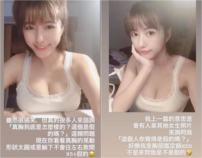 許多男生對大奶妹難以抵抗,但其實有很多都不是天生巨乳,隨著技術的進步,真假奶也越來越難分辨。咖滋咪在限時動態透露,很多人會找她諮詢,「真胸到底是怎麼樣的?這個是假的嗎?」之類的問題,讓她笑虧自己是「胸部鑑定師」,她直言,「形狀太圓或是躺下不會左右散開有 95 % 是假的!」,並用此影片親自示範什麼是「真胸的晃動」。