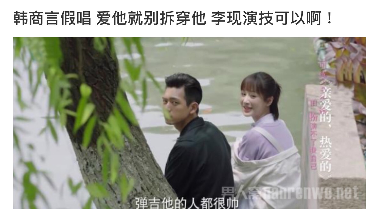 韓商言在《親愛的,熱愛的》雖躲過了臭腳、假唱,但都還是躲不過網友眼尖的眼,近期又多增加了韓商言內褲,成為大家議論的熱搜話題,不過先前韓商言在小船上邊彈彈吉他邊唱歌,帥氣的模樣羨煞了不少人,對著佟年(楊紫)獻唱的帥氣模樣,讓觀眾甜入心中,佟年一句「彈吉他的人都很帥」,就算韓商言是假唱,粉絲也不生氣,更直接反駁:「愛他就別拆穿他」,為韓商言擁護到底。