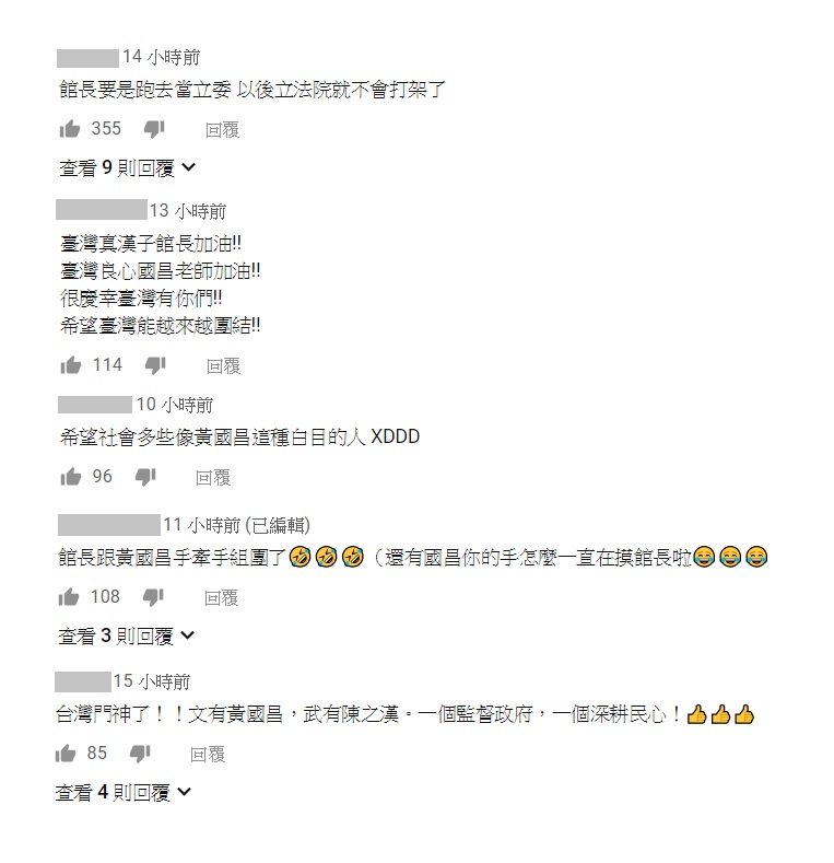 而對於那次的談話,黃國昌也坦言「對我自己來講收穫很大」,言談之中吐露出兩人對於台灣社會,整個大環境的關心,這也讓許多網友心有戚戚焉地回應「希望社會多些像黃國昌這種白目的人」「館長要是跑去當立委 以後立法院就不會打架了」「館長跟黃國昌手牽手組團了」。